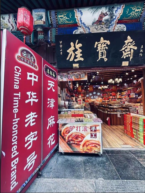 古文化街還有全國聞名的地 道津門老字號美食,如狗不理包子、耳朵眼炸糕、煎餅果子、天津麻花、果仁張、 皮糖張、蹦豆張、老翟藥糖、張家水鋪等,更可欣賞手工藝人親手製作的面人、 糖畫、糖人、內畫、茶湯等民俗技藝。