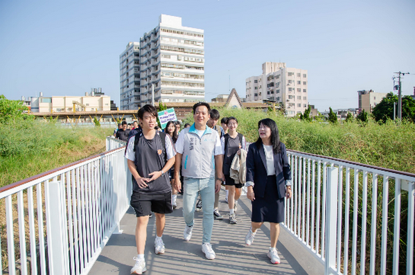 落實「新竹好學」施政策略,讓學生們有安全上下學的道路,新竹市第一條與學生共同合作的「香山高中汀甫圳第十四支線簡易通學路」日前完工啟用,代理市長邱臣遠於今(11)日與學生們一同搭火車到三姓橋火車站,步行體驗全新完工的通學步道,實現對學生的「安全通學」承諾。