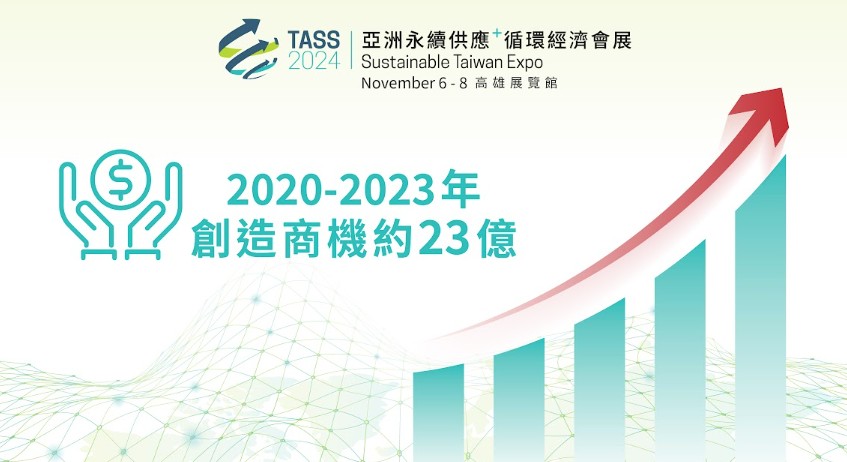 除此之外,每一屆的亞洲永續供應暨循環經濟展(TASS),不僅是展示前瞻技術的平台,也是企業商機媒合的重要場域。過去四年(2020-2023),展會現場創造近23億的商機媒合,而2024TASS也邀請到台塑、中鋼、台聚、南茂科技、太平洋電線電纜、台灣康寧等15家大型企業,將與ESG解決方案業者深入交流,攜手推動永續發展。