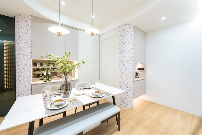 華廈產品為日系極簡風格外觀設計,結合格柵美學的停車區域,為住戶帶來與美共生的居住體驗。齊質三房設計均為戶戶邊間、前後陽台,確保最佳通風與採光效果,提供居住的私密性和舒適度。