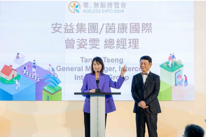 主辦單位安益集團茵康國際會議顧問公司曾姿雯總經理於2024樂。無齡博覽會開幕致詞。(圖/茵康國際會議提供)