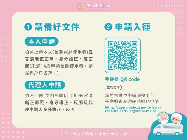 新竹市114年度長期照顧交通接送服務(補助券)申請方式如下: