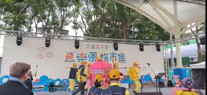 大溪豆干節豆樂風格市集邁入第二天,一早迎來白沙屯媽祖粉紅超跑至會場繞巡,更停駕於沖繩石垣島觀光攤位及活動舞台,日本團體「Ami & baba桑」 也在現場演唱由日本曲改編的「花心」,以虔誠的歌聲向媽祖娘娘表達敬意,下午香蕉哥哥跟蔓越莓姐姐也來到現場帶動跳,跟有獎徵答,告訴大小朋友來大溪一定要吃好的豆干,隨後的Swing Dance Taiwan舞團更直接到台下邀請大家隨著大溪女兒鳳飛飛的音樂一起翩翩起舞,感受美好時光。