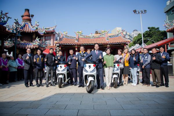 警察局表示,政府資源有限,但民力無窮,感謝新竹關帝廟的大力支持,這次捐贈讀5輛電動巡邏機車將配置轄區南門派出所使用,車輛節能環保、性能優越,讓警察同仁於治安、交通勤務上更具機動性,有效提升執勤效率,維護社區治安。