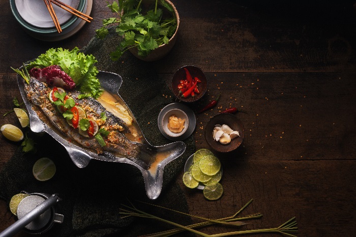 泰式清蒸檸檬魚-香茅、九層塔是少不了的香氣,但不得不讚嘆,這道地泰式海鮮醬與新鮮鱸魚所迸發出的極美諧和。
