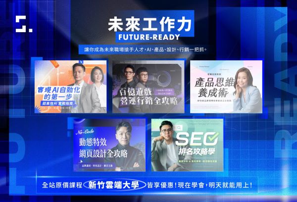 雲端啟航,智慧學習!新竹市政府首度推出「新竹雲端大學─Hsinchu Campus AI雲學時代」活動,結合四大線上課程平台,提供上千堂優惠課程與上萬個優惠名額,歡迎16歲以上設籍或就業於新竹市的勞工朋友,善用數位學習資源與AI科技,持續提升職場技能,拓展多元職涯發展。