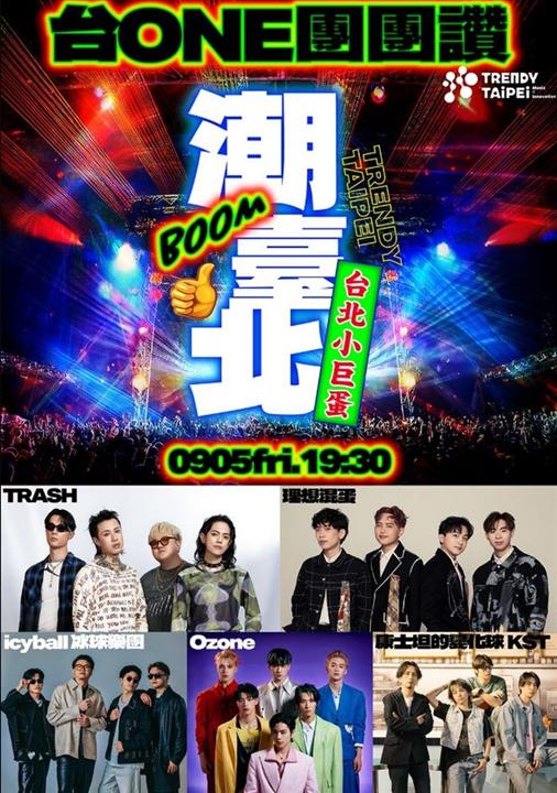 臺北市政府文化局今(114)年首度以公開徵案方式,攜手民間專業演唱會團隊製作團隊寬宏藝術經紀股份有限公司策畫,打造「潮臺北TRENDY TAIPEI」系列壓軸活動「潮臺北Boom台北小巨蛋」,今年主題分別有:以臺灣團體為主的「台ONE團團讚」、韓國女力拼盤「KOREA GIRL’S POWER」,以及日本潮流代表「J-POP NIGHT」,演唱會將於9月5日至9月7日連續3天引爆臺北小巨蛋,邀集臺灣、韓國與日本三地重量級人氣團體輪番登場,不僅為本市注入音樂活力,更期望帶動城市觀光與演唱會經濟效益。