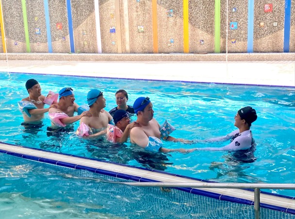 仁愛基金會林湘雅執行長表示,感謝躍齡、陽明、百齡、福齡、陽星、華齡等6個扶輪社遠從台北來愛心關懷,支持水中活動經費,本會晨曦發展中心目前有134位服務對象,大部分服務對象因肢體活動度受限,長期承受身心壓力,水中活動可協助伸展肢體及放鬆肌肉,同時提供豐富的感官刺激,穩定情緒並促進復健效益。每年7月至9月服務對象都很期待水中活動,例如小凱在水中顯得特別放鬆,能順利完成仰躺踢水練習;而大江和小宇從小有游泳經驗,展現流暢的蛙式與自由式;還有使用輪椅者,在落地式移位機的輔助下,也能安全地參與活動,大家在泳池中自由漂浮,盡情享受難得的清涼與快樂。