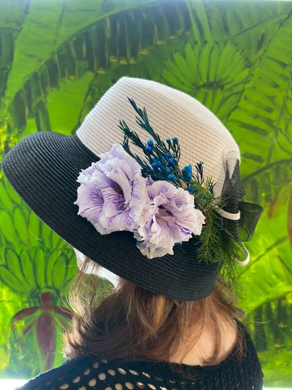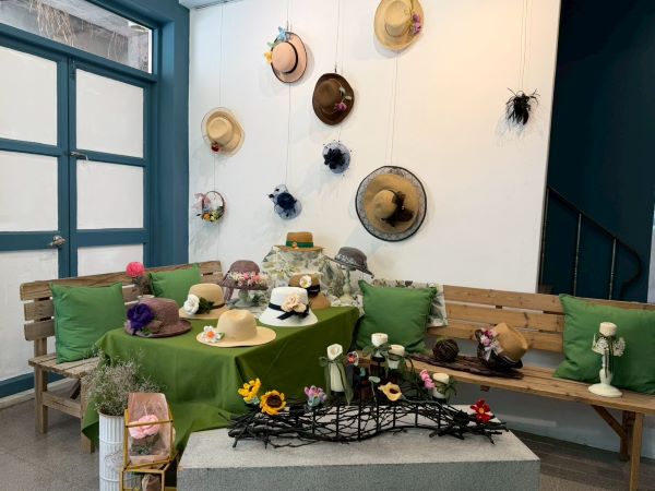 蔣育鳳老師是匯客市藝文設計中心的主人,推廣花藝美學不遺餘力,此次主題展她帶領新瓦屋花藝設計班的學員,將繽紛花卉化為創作靈感,讓帽子成為盛開的花園——每一頂帽子都蘊藏著對自然花卉與對生活的禮讚。