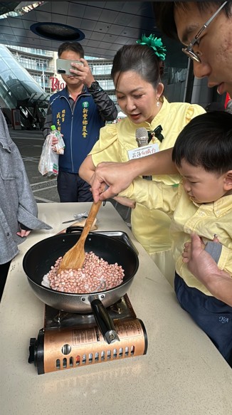 現場還有炒花生D l丫活動,吸引不少民眾直接參與。花生先洗過,先炒塩,再放哦洗好的花生,炒15分鐘冷卻後才可以上鍋放涼才會脆!