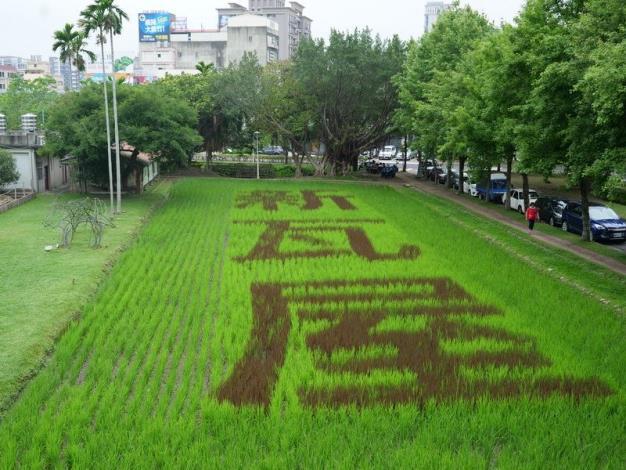 文化局李局長表示,本次聘請台灣稻農有限公司規劃稻田彩繪種植(係由苗栗農業改良場技術授權)此紫色彩稻品系為IR1552(屬長粒秈型稻、口感硬),在臺灣目前除作為基礎研究外,主要作為稻田彩繪或觀賞用盆栽,彩稻育成種植期約115至120天。彩繪稻田規劃初期需先確定文字圖樣,並以田地範圍概估文圖的大小,確定文圖規格後,請專人在水稻田中進行圖型佈點,確定佈點範圍才能插植彩稻秧苗。完成彩稻插秧,周邊才能續插越光米秧苗;兩項作業均須以人工方式完成,重現早期農夫插秧的情景。