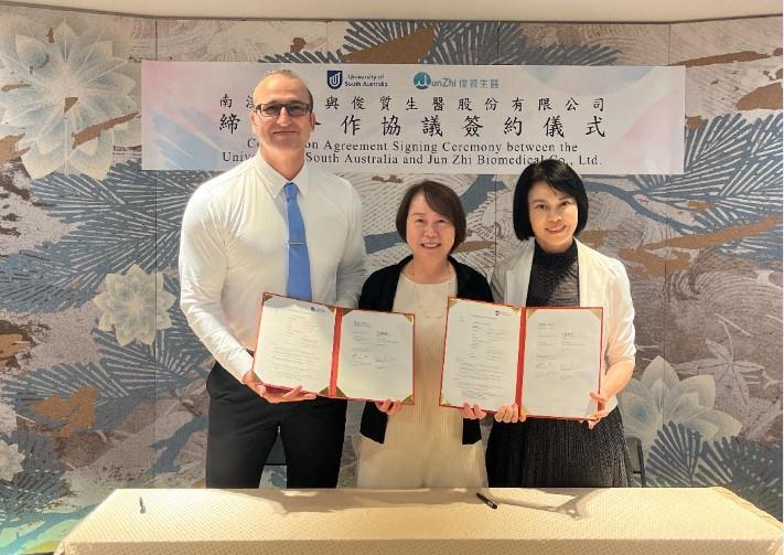 南澳大學與俊質生醫締結合作協議,南科管理局鄭秀絨局長見證俊質生醫邁向國際化的第一步俊質生醫股份有限公司(JUN ZHI Biomedical Co., Ltd.)於 6 月 18 日正式與澳洲知名大學
