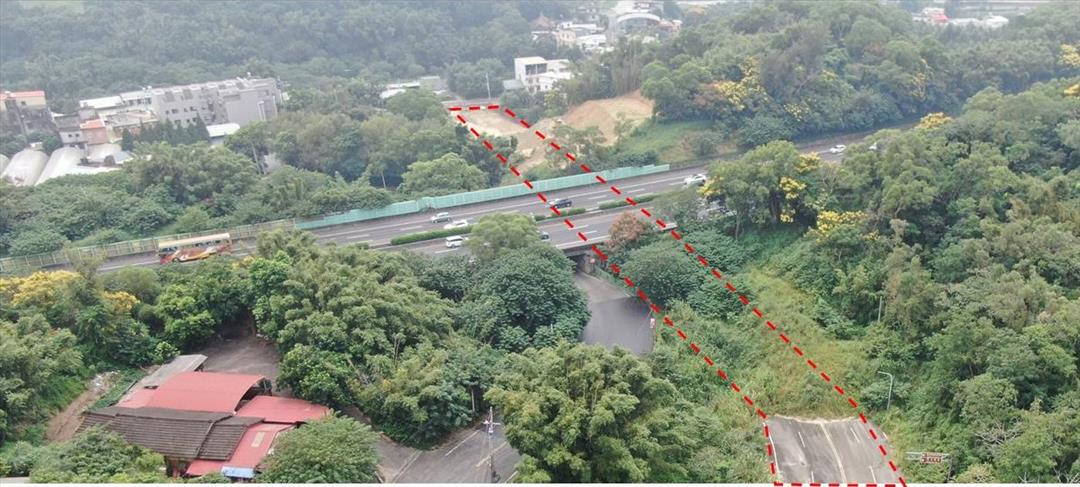 紅色虛線即為工程範圍新竹縣茄苳交流道聯絡道路穿越國道1號第三標工程(A3標),今(3日)上午舉行開工祈福典禮。新竹縣長楊文科表示,這條道路打通後,對寶山鄉的發展具有相當地影響力,期待工程能如期、如質完