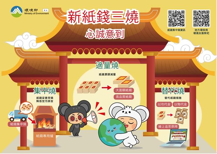 守護中元普度期間空氣品質,新竹市政府力邀民眾、企業及寺廟共同響應環境部「新紙錢三燒」政策,包含「集中燒、適量燒及替代燒」,循序漸進推動環保祭祀,守護新竹市好空氣。環保局表示,此次政策同時結合竹竹苗三縣