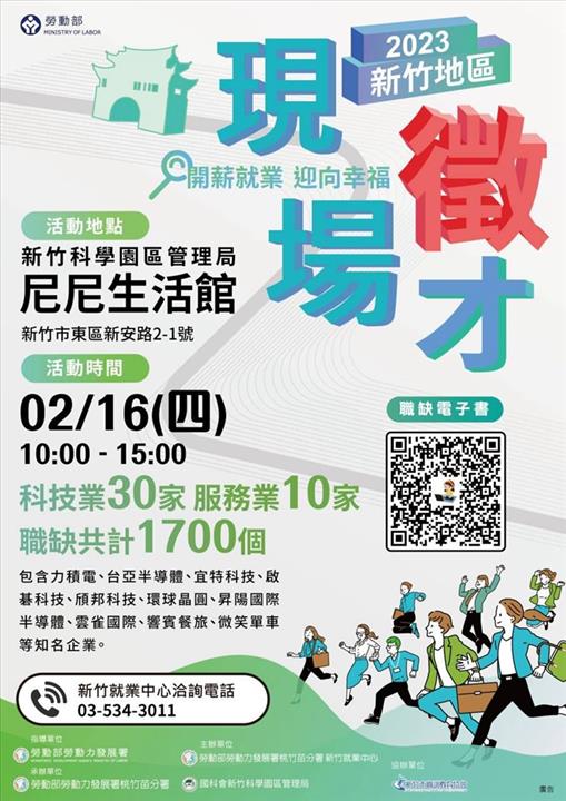 2023竹市首場徵才活動16日登場!40家廠商釋1700職缺 歡迎求職、轉職的民眾把握機會參與