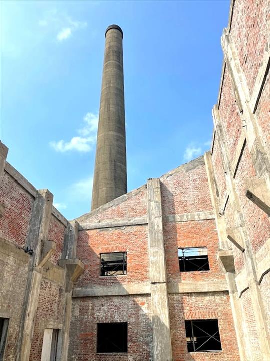 全台現存規模最大二戰軍工遺跡 六燃大煙囪廠房一期修復完工,重現廠房巨型柱、長煙道