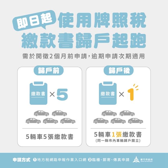 多部車輛一張稅單就搞定! 竹市牌照稅申請歸戶一次繳超便利