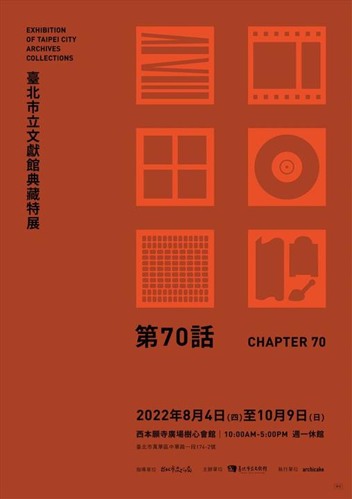 民國41年成立的臺北市立文獻館(前身為臺北市文獻委員會),今年歡度70周歲!70年來,文獻館累積超過上萬件文獻史料,特別辦理「第70話—臺北市立文獻館典藏特展」,精選逾百件文物,自8月4日