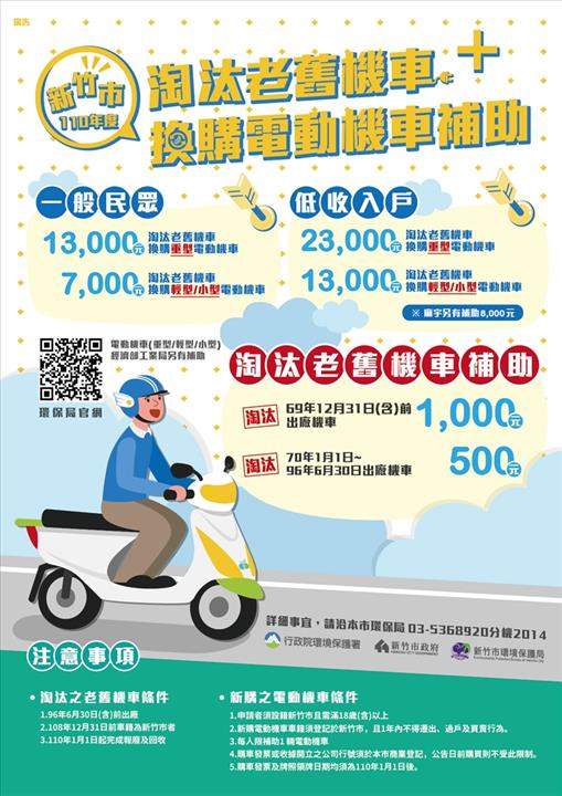竹市老舊機車汰換加碼補助 最高可領3萬8,000元
