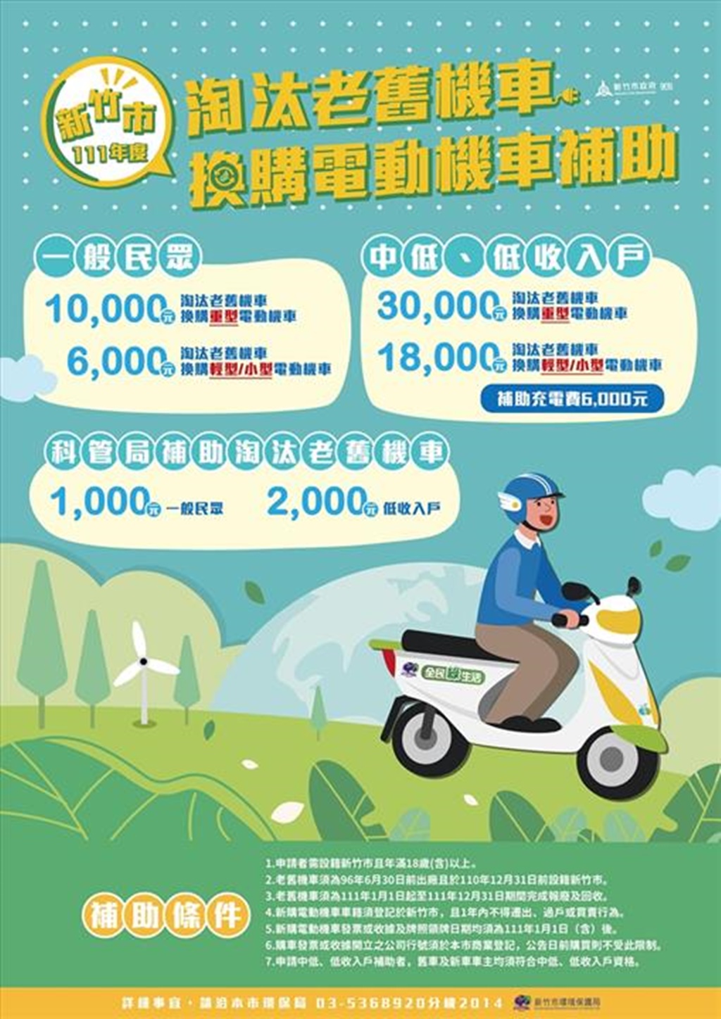 新竹縣114年度機車汰舊及新購電動機車補助計畫正式啟動 最高可領補助金額達 1萬7,500元