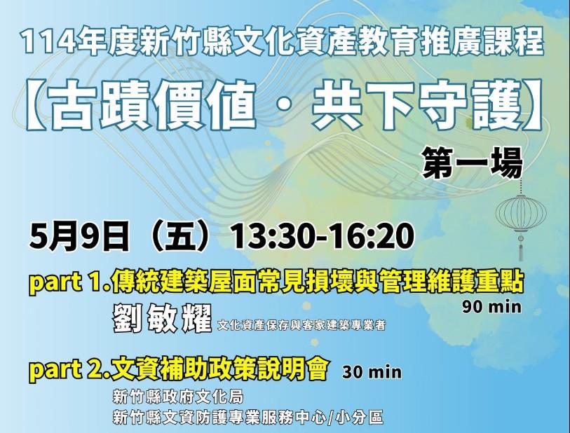 「古蹟價值.共下守護」系列課程搭配文資補助政策說明會5/9登場 每案補助最高15萬元