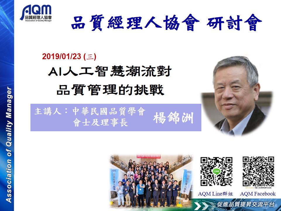 「AI人工智慧潮流對品質管理的挑戰」研討會,歡迎報名參加